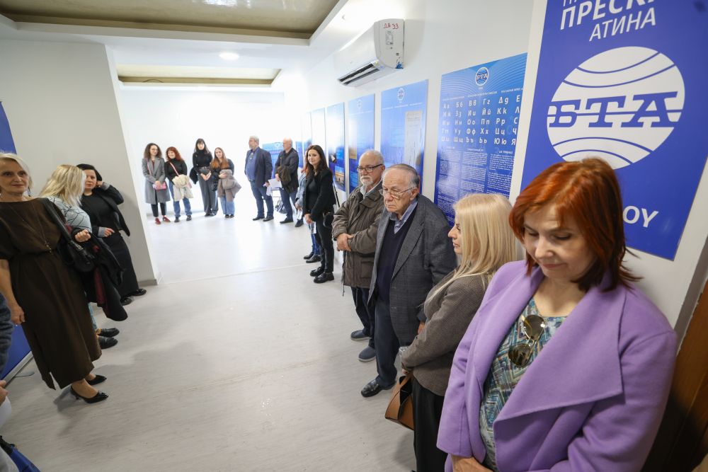 В пресклуба на БТА в Атина беше открита и изложба, представяща историята на глаголицата – първата славянска азбука, създадена от светите братя Кирил и Методий, и нейното значение за духовното и културното развитие на славянските народи. Експозицията включва архивни фотографии от събития, посветени на делото на просветителите, изображения на средновековни ръкописи, на икони и от съвременни инициативи, посветени на писмеността. Чрез документални свидетелства и визуални материали изложбата проследява ролята на България в съхраняването и разпространението на славянската книжовна традиция.