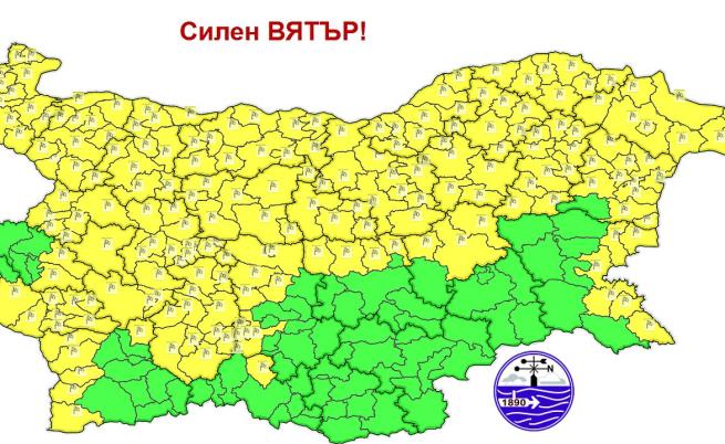 Във всички останали населени места на страната ще има силен вятър и от НИМХ съветват: „Бъдете внимателни за летящи във въздуха предмети. По тази причина са възможни локални нарушения на обичайните дейности на открито“.