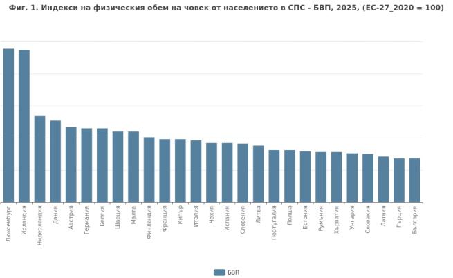 Гърция и България отчитат БВП на глава от населението с 32% под средния за ЕС през 2025 г.