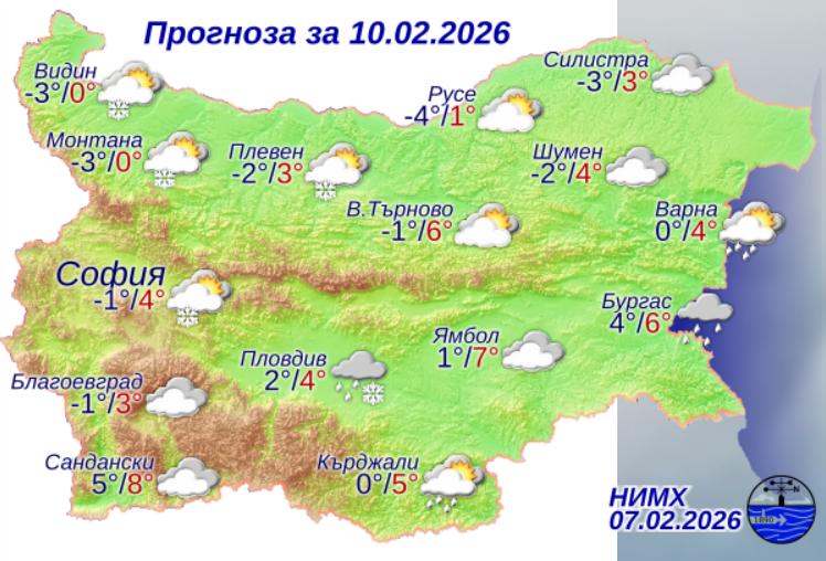 Максималните температури ще бъдат между 8° и 13°.