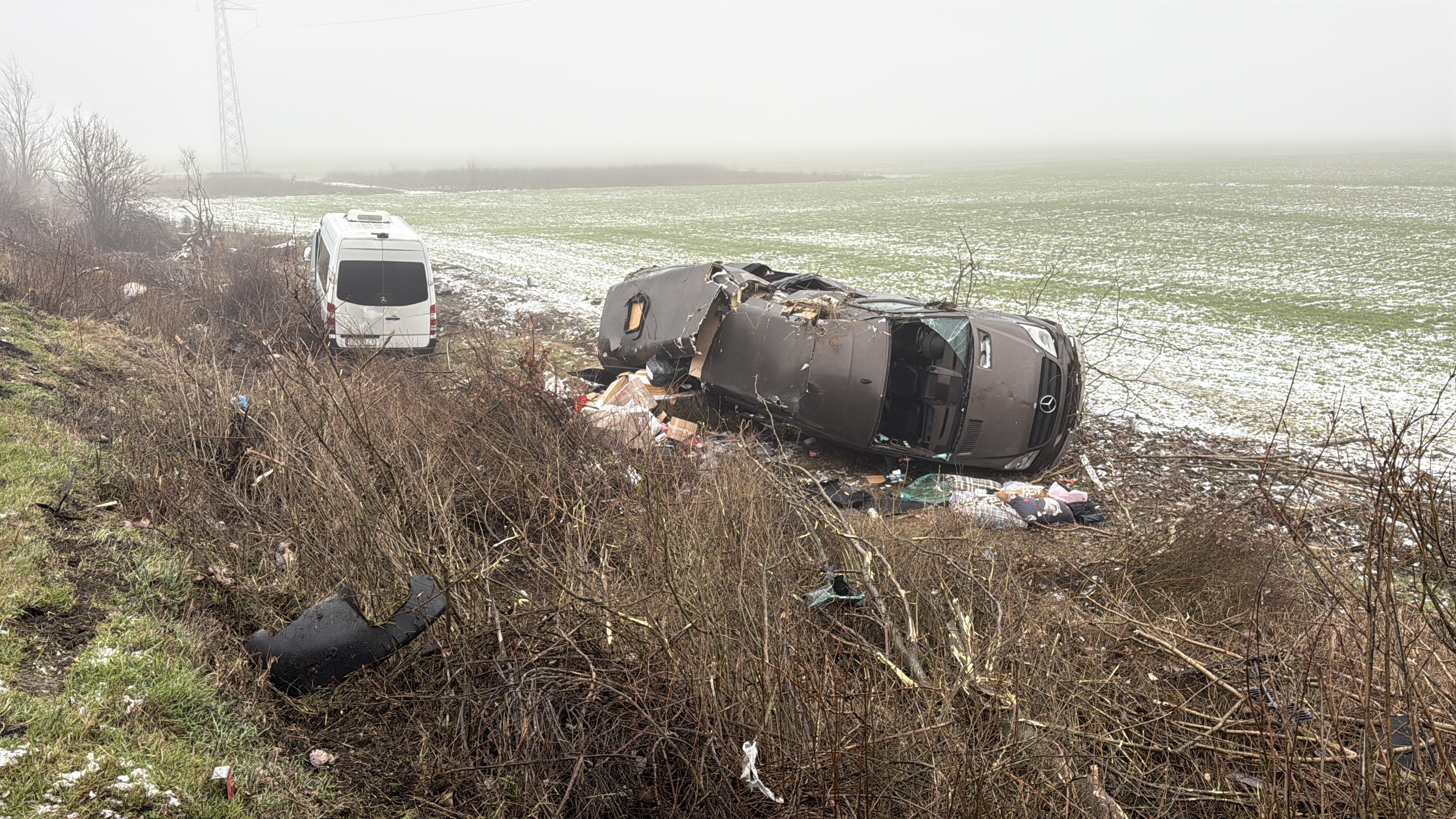 Инцидентът е станал през нощта. Единият бус е бил повреден и е бил дърпан от другия, когато по все още неясна причина и двете превозни средства се преобръщат и излизат от пътя.