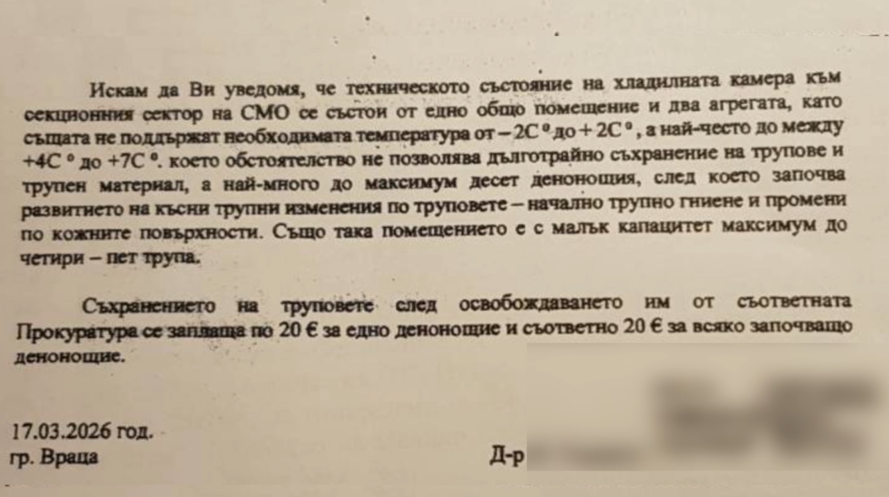 Медицинските експертизи на убитите в кемпера са направени само от 1 лекар. При такъв безпрецедентен случай („случай без аналог“, както се изразиха представители на прокуратурата) извършването на експертиза само от 1 лекар е подигравка, при това на място, което не разполага с необходимата апаратура за това. Защо телата не са закарани в гр. София, където да се направи експертиза от екип от специалисти с възможно най-добрата налична в държавата апаратура? Разполагам с писмо от извършилия експертизата лекар от Враца до разследващите, в което се обръща внимание на това, че телата не могат да бъдат в съдебна медицина в град Враца за повече от 10 дни поради вида на хладилната камера и поради други технически пречки. Въпреки това обаче телата на нашите близки бяха там над 1 месец, преди да се разреши погребението им. Прилагам текст от това писмо, което беше изпратено и към майката на Иво.