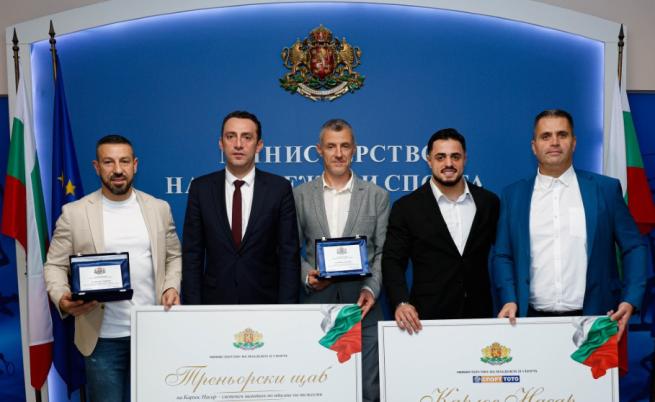 Той поздрави екипа на Насар и връчи почетни плакети на треньорите Павел Христов, Милко Георгиев, както и на масажиста Атанас Литков. Треньорският щаб на световния шампион ще бъде награден с парична премия в размер на 66 000 лв.
