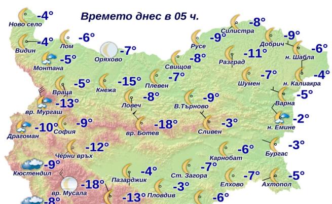 Максималните температури ще бъдат предимно между 0° и 5°.
