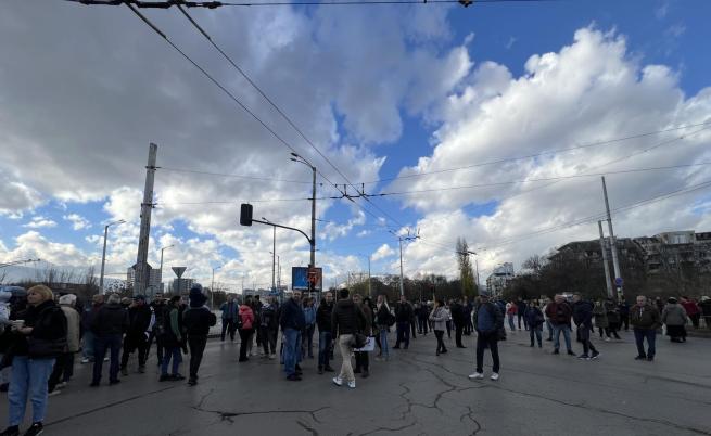 Протестиращите образуваха жива верига и затвориха цялото кръстовище преди моста „Чавдар“ – бул. „Владимир Вазов“, ул. „Ильо Войвода“ и ул. „Черковна“.