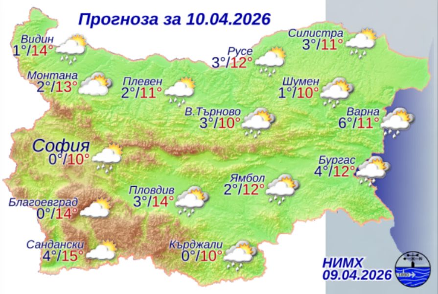 П редимно облачно и хладно време на Разпети петък, като на места ще има слаби валежи от дъжд, а в сутрешните часове в северните и планинските райони дъждът временно ще преминава в сняг, прогнозират синоптиците от Национален институт по метеорология и хидрология (НИМХ).