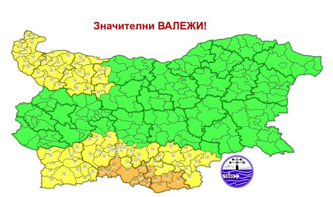 Значителни валежи се очакват и в областите Благоевград, Пазарджик, Пловдив и Хасково, където е обявен жълт код. Там ще паднат над 30 литра дъжд на кв.м.