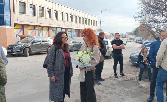Той беше посрещнат от семейството си - съпругата му, сестра му и баща му, както и от членове и симпатизанти на „Продължаваме промяната“.
