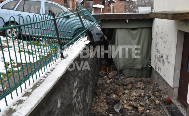 Превозното средство е спряло в ограда, която е предотвратила падането му в двора на къща. Преградата е частично съборена, а по колата и оградата са нанесени материални щети.