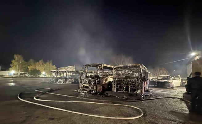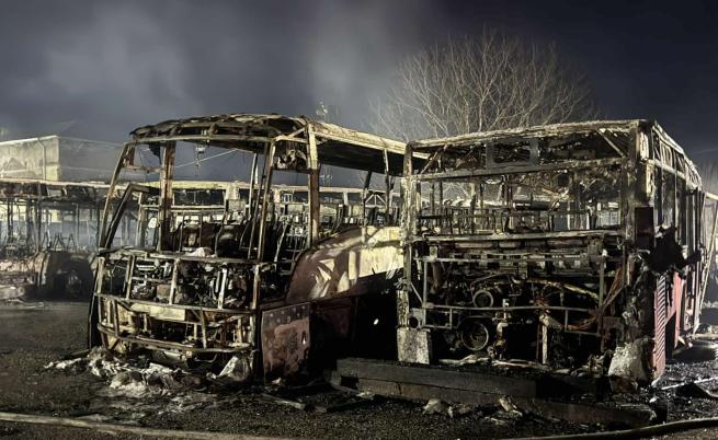 Пожар изпепели автобуси, два буса и леки коли в Костинброд