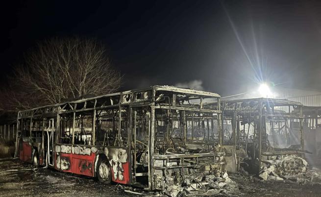 П ожар изпепели четири автобуса, един ученически автобус, два буса и леки автомобили в Костинброд. Огънят е възникнал в базата на дружество „Общински превози“.
