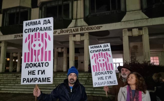 Сред плакатите, които държат протестиращите, е “Няма да спираме, докато не ги раираме”.