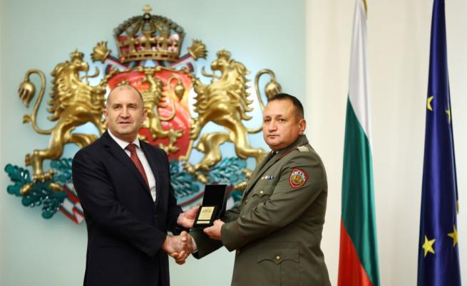 "Истинско удоволствие е да ви поздравя с настъпващия празник на сухопътни войски – 19 ноември. За мен е чест в навечерието му да отлича с Почетния знак на президента на България двама наши военнослужещи и генерал от резерва за техния достоен професионален път в редиците на Българската армия, за значимия им принос в развитието на Сухопътните войски и успешното изпълнение на мисиите на въоръжените сили", каза Румен Радев при връчване на отличието.