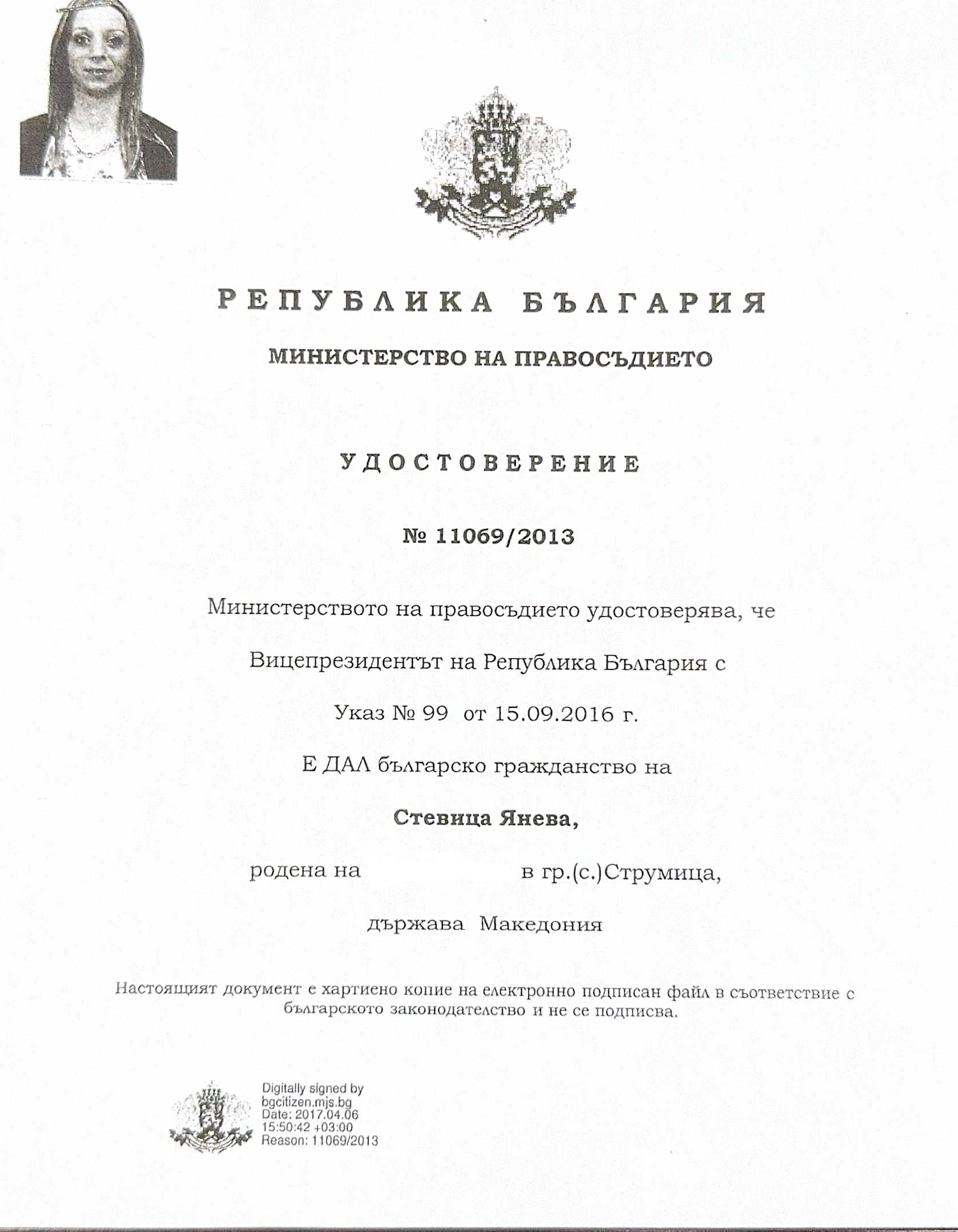 Нещо повече – в декларацията за кандидатстване за гражданство Стевица Янева посочва, че майка ѝ, баща ѝ, двете ѝ деца и сестра ѝ са българи по народност от Струмица. В интервюто, проведено пред българските власти, балдъзата на настоящия македонски премиер разказва, че има роднини в село Брезница, Петрич и София. Съпругът ѝ Йорданчо Янев също е получил български документи през 2016 година.