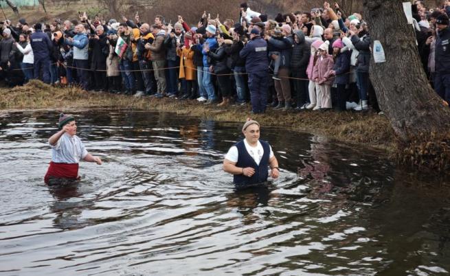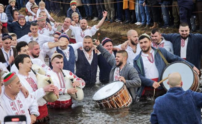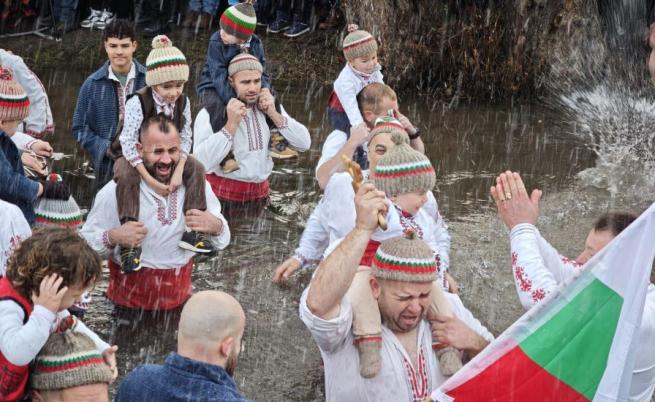 С тотици мъже и тази година се включиха в традиционното мъжко хоро на Богоявление в студените води на река Тунджа в Калофер.