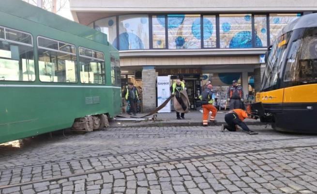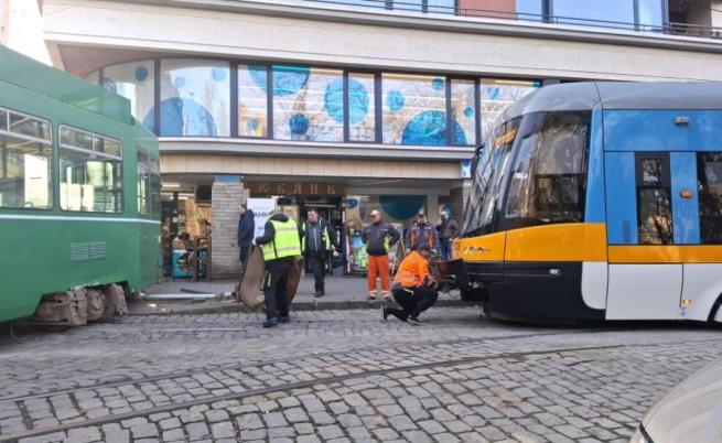 Наложило се е пътуващите с градския транспорт да изчакат, докато аварийните служби изтеглят трамвай 12 и освободят движението по релсите.
