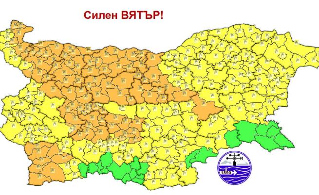 П редупреждения от първа и втора степен - жълт и оранжев код е издаден за цялата страната, сочи справка в сайта на НИМХ. Предупреждението е за силен вятър.