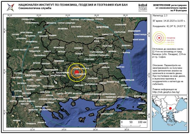 З еметресение е регистрирано в 11:05 ч. край Пловдив. Това сочат данните на Националния институт по геофизика, геодезия и география при БАН.