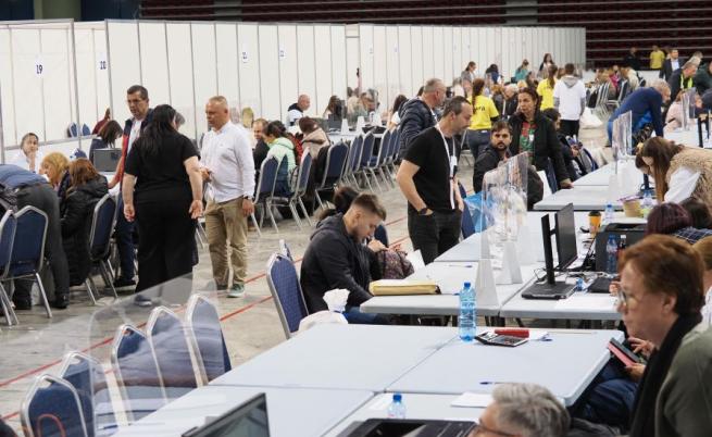 П родължава обработването на изборните книжа в зала „Арена 8888” в София. Там след края на изборния ден снощи пристигнаха секциите, обслужвали 25 и 23 районна избирателна комисия.