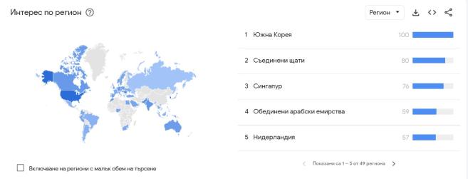 В световен мащаб Южна Корея оглавява списъка с най-много потребители, търсили информация по темата. След нея се нареждат САЩ, Сингапур, ОАЕ и Пакистан.