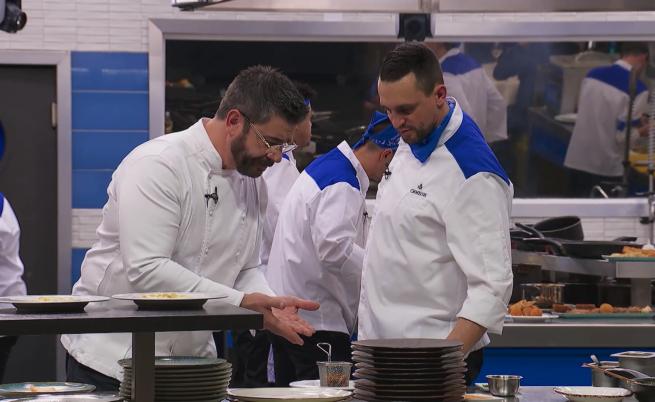 Б езкомпромисният шеф Виктор Ангелов елиминира пореден претендент в Hell’s Kitchen тази вечер. След груби грешки по време на вечерната резервация, бившият боксьор Симеон Маринков се прости с мястото си в кулинарната надпревара.