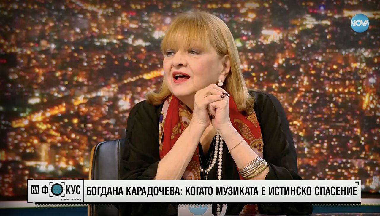 В навечерието на 10 ноември в предаването „На фокус“ по NOVA гостува една от най-емблематичните български певици - Богдана Карадочева. Жената с дрезгавия, топъл глас, който звучи в домовете на поколения българи вече повече от половин век, сподели своята лична история - белязана от таланта, но и от болката, оставена от комунизма.