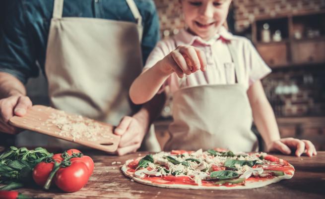 Във вечерта, когато ще хапвате пица, само я “сглобете” набързо. За основа използвайте консерва доматено пюре (тази седмица 140 г. са на цена от 1.29 лв.) и я овкусете с риган, чесън и зехтин – бърз и ароматен сос за пица. Разточете прясното тесто за пица от Lidl в XXL опаковка (сега с 32% отстъпка – за 2.69 лв.), намажете с готовия сос, добавете от подготвените съставки и изпечете.