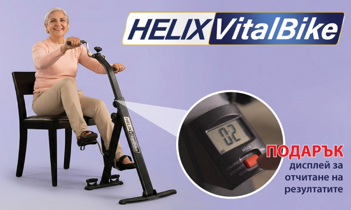 Иновативното колело за раздвижване Helix VitalBike ви позволява да тренирате ръцете и краката едновременно – удобно, лесно и без натоварване, дори докато седите у дома.