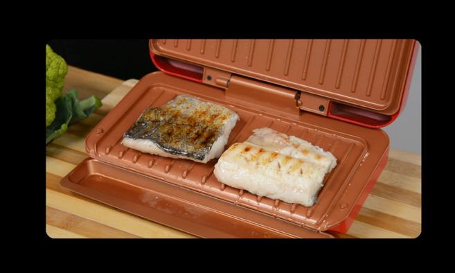 - Двустранно печене – без обръщане Двата нагревателя изпичат равномерно от двете страни, така че не стоите над тигана и не „пазите“ храната.