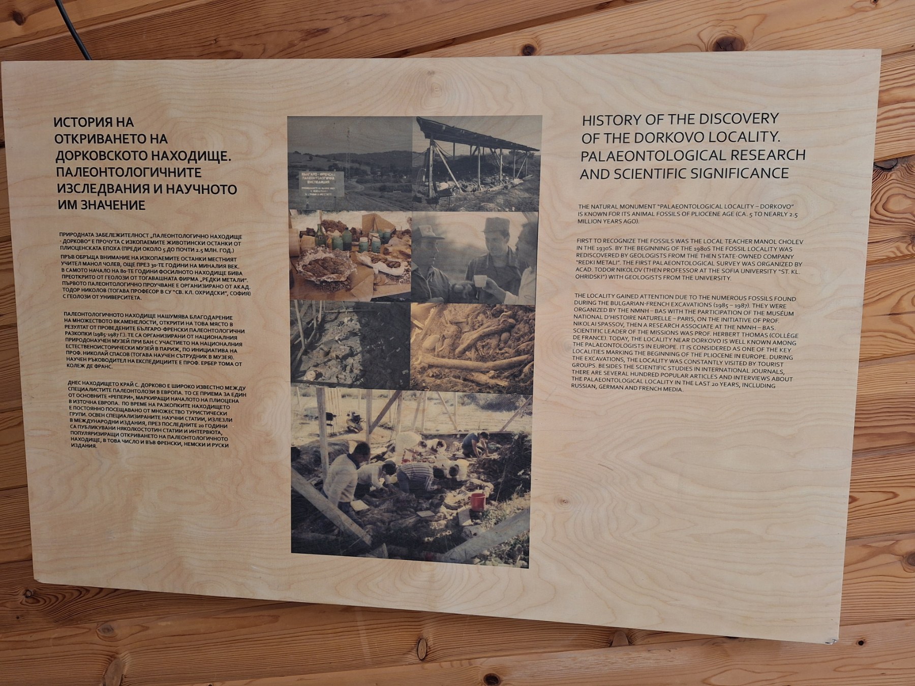 Тези загадъчни времена разкриват свят, коренно различен от днешния, изпълнен с невероятни създания и драматични природни катаклизми. Всяка открита вкаменелост носи със себе си частица от една отдавна изгубена история. Земите на България крият ценни следи, които помагат на учените да възстановят картината на древния живот. Потапяйки се в това далечно минало, ние не само научаваме повече за природата, но и за мястото на човека в нея. Едно подобно уникално място, запечатало милиони години история е плиоценското палеонтологично находище край село Дорково.
