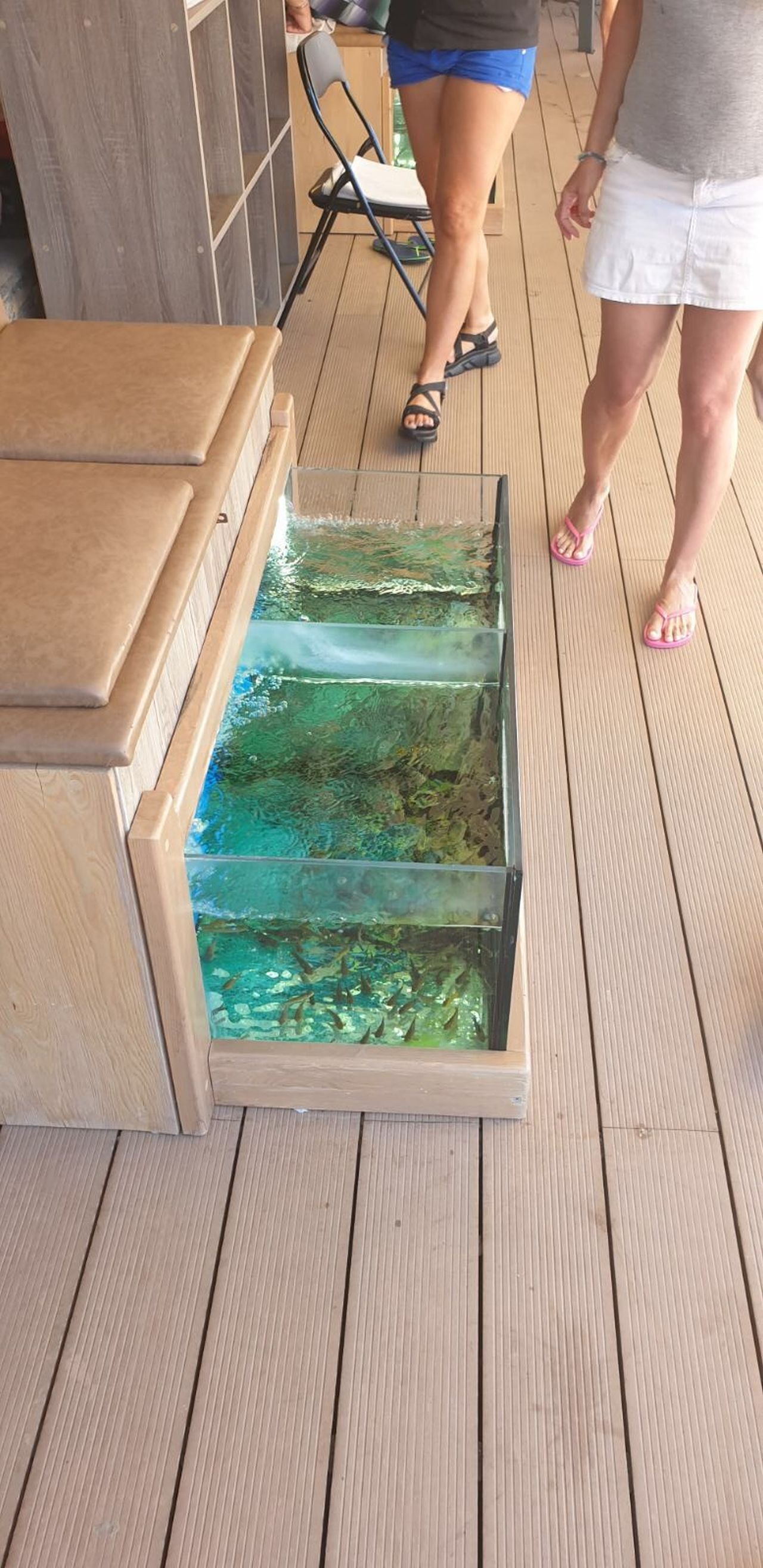 Потапяте краката си в нещо като аквариум и стоите приблизително около 15-20 минути.