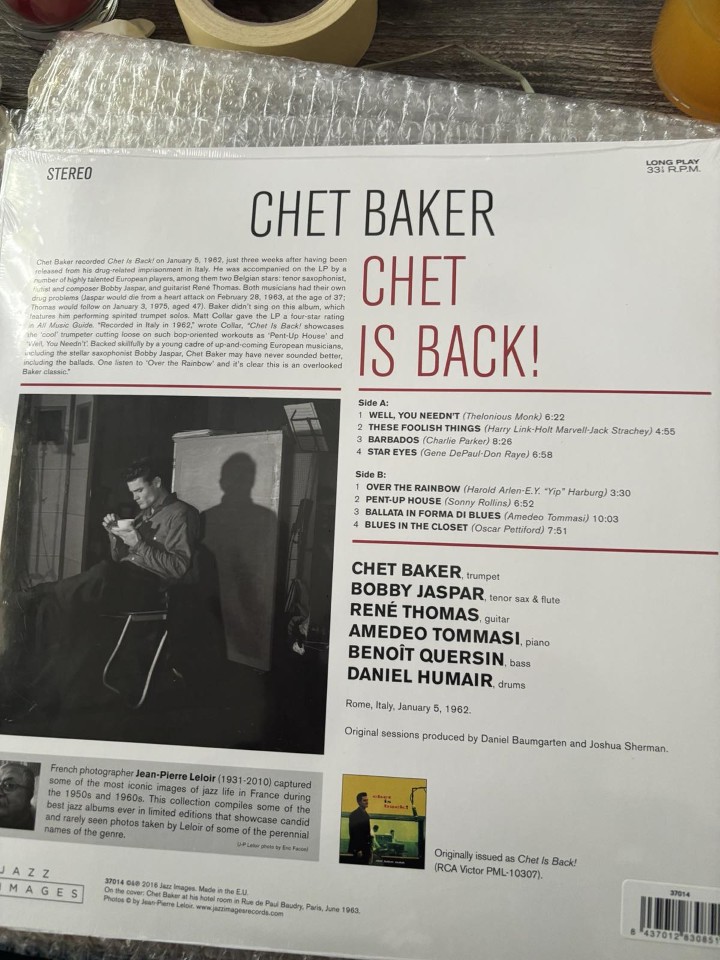 В исоки, иглолистни дървета, дъжд през прозорците, Thorens (грамофон) и…My Funny Valentine. Бях обещала, че когато си купя къща, дори и да не сме заедно - някой ден ще слушаме Chet Baker на плоча. Влюбих се в този красив бунтар на джаза, синият принц на тъгата. Случи се около една страст, на която впоследствие прецених, че не дължа обещанието за плочите в дъжда. Достатъчно е, каквото имахме.