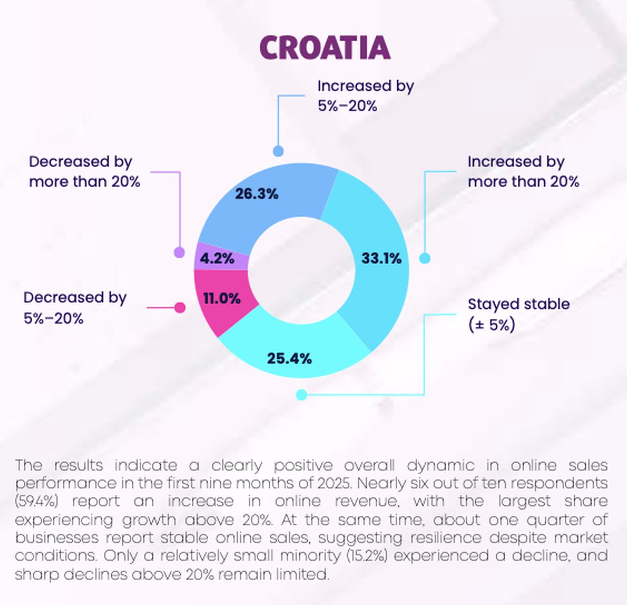 - В същото време около 45% от бизнесите все още получават под 1/4 от приходите си онлайн. Това прави хърватския пазар доста поляризиран - имат много силни онлайн играчи и такива, които все още разчитат предимно на физическите продажби.