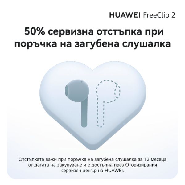 Второто поколение на култовата серия безжични слушалки Huawei FreeClip – Huawei FreeClip 2, вече се предлага на българския пазар на препоръчителна цена от 199 евро. Закупилите FreeClip 2 до 1 март 2026 г. включително могат да се възползват и от ваучер за отстъпка от 20 евро, която важи както във физическите, така и в онлайн магазините. Новият модел се предлага в три цветови варианта – графитено черно, светлосиньо и бяло, от Technopolis, A1, Yettel, ЗОРА, партньорите на дистрибутора Polycomp, включително OZONE.bg, Ardes и Plesio, и скоро ще бъдат налични и във Vivacom и Technomarket.