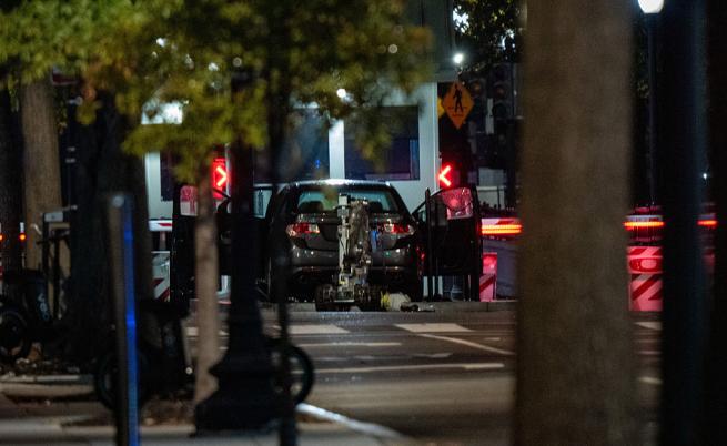 „Около 22:37 ч. лице се вряза с автомобил в портата за автомобили на „Сикрет Сървис", намираща се на 17-та улица и E St, NW“, написаха от службата в X.
