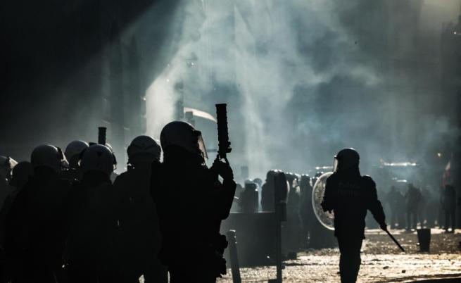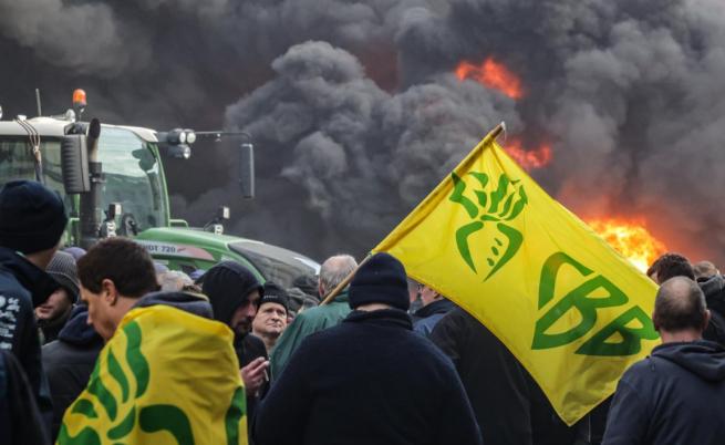 Бурни сцени се разиграха пред Европейския парламент, където фермери подпалиха огън от гуми и сено и замеряха полицията с грудки, а органите на реда отвърнаха със сълзотворен газ, като черен дим изпълни околните улици.