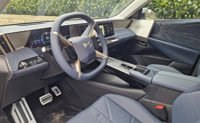 Другата основна характеристика е системата DS ACTIVE SCAN SUSPENSION, която анализира пътя напред чрез бордова камера и независимо адаптира амортисьорите в реално време. Гонен е комфорт, което е и заложено по default заложено на френската марка. Пави впечатление и че автомобилът не се усеща тежък, нещо, което предполагат размерите и капацитетът на батерията, но под 2300 кг тук е доста добър показател.