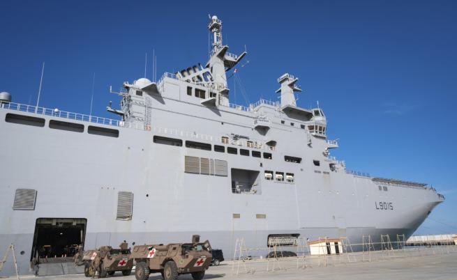 Франция разполага с три амфибийни хеликоптероносача — „Мистрал“, „Диксмюд“ и „Тонер“. Тези кораби с водоизместимост 21 500 тона и дължина 199 метра, са своеобразни "плаващи пристанища". Те са оборудвани с болница, десантни катери и могат да приемат на борда си до 1500 души при евентуална евакуация на граждани.