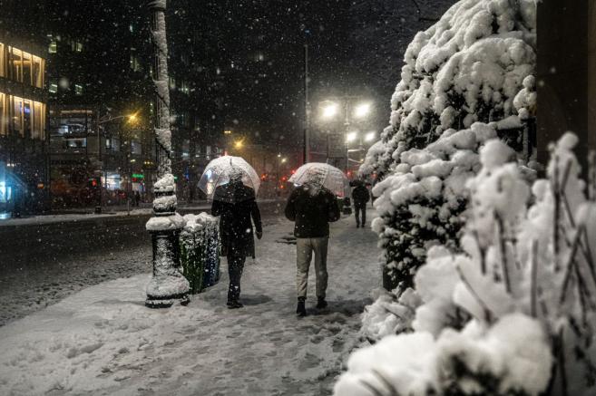 Улиците на „Голямата ябълка“ бяха призрачно празни, с изключение на снегорините, тъй като в неделя от 21:00 ч. влезе в сила забрана за пътуване, която продължава до обяд в понеделник.