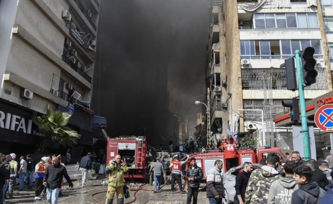 Няколко последователни бомбени експлозии разтърсиха столицата Бейрут и в небето се издигна дим. При един от ударите срещу гъстонаселен квартал са били убити най-малко 12 души, заяви източник от ливанските сили за сигурност.