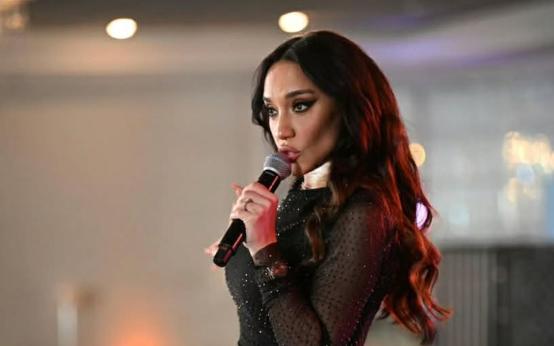 Донатела демонстрира стройната си фигура, позирайки в бяла рокля с пайети, като свежото ѝ лице
