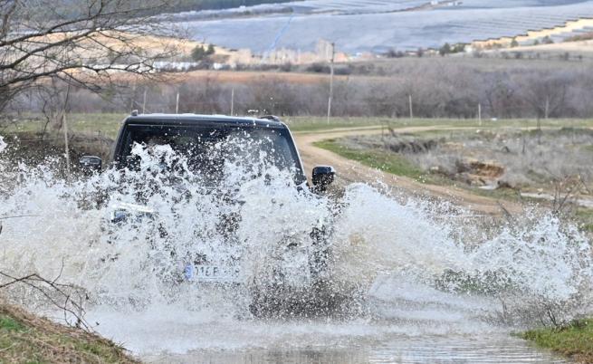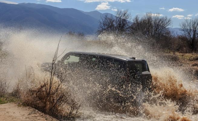 Първият вариант е градското изпълнение, вторият – офроуд изпълнението. Различават се визуално, но разликата най-вече е в оборудването. Аз карах градския вариант (E1+), който е на адаптивно въздушно окачване и чупеща се задна ос, чийто задни колела завиват на 10 градуса. И това прави възможно тази кола, дълга над 5 метра, да има радиус на завой от 5,2 метра!