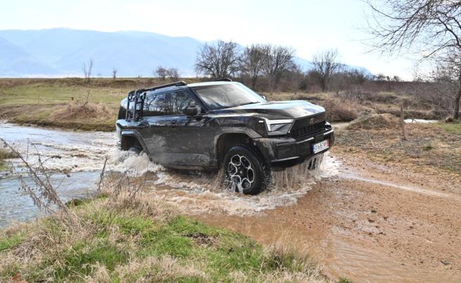 Същата версия е с просвет 228 мм (минимален), но въздухът позволява ход на окачването от 150 мм (на четири степени), което за офроуд помага много. Помага и за 900 мм дълбочина на газене (700 мм при версията Е0). Двете изпълнения предлагат по 30 градуса ъгъл на заход и отход. И всичко това значи, че MHERO 817, плюс централен диференциал, е много потентен извън пътя. Не успях да разбера това, защото избраното трасе не предлагаше подобни условия, но калта ми даде да усетя нещо, което в друг автомобил никога не съм изпитвал.